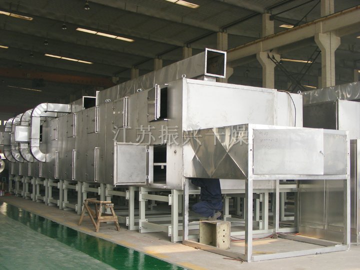 DW係列多層帶式幹燥(zào)機是成批生產用的連續式幹燥設備,用於透氣性較好的片狀、條狀、顆粒狀物料的幹燥,對於脫水蔬菜、催化(huà)劑、中藥飲片等類含水率高(gāo)、而物料溫度不允許高的物料尤為(wéi)合適;該係(xì)列幹(gàn)燥機具有幹燥速度快、蒸發強度高、產品質量好的優點, 對(duì)脫水濾餅類(lèi)的(de)膏狀物料, 需經造粒或製(zhì)成條狀後方可幹燥。
