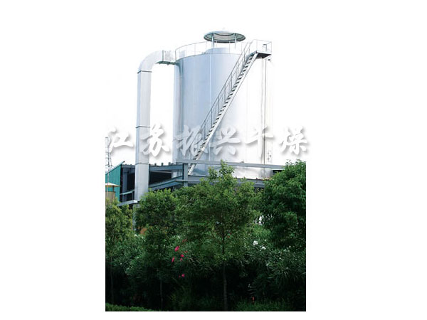 本機組(zǔ)工作過程為料液通過隔(gé)膜泵高壓(yā)輸入,噴出霧狀液滴,然後同熱空氣並流(liú)下降,大部分粉粒由塔底排料口收集,廢氣及其微小粉末經旋風分離器分離(lí),廢氣由抽風(fēng)機排出(chū),粉末由設在旋風分離器下端的授(shòu)粉筒收集,風機出口還可裝備二級除塵裝置,回(huí)收率在96-98%以上。