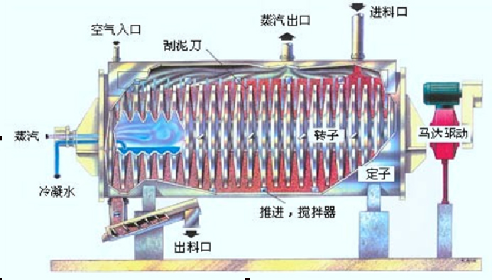 6、操作穩(wěn)定:由於空心(xīn)圓盤片特殊的壓(yā)縮----膨脹攪(jiǎo)拌作用,使(shǐ)物料顆粒充分與傳熱麵(miàn)接觸,在軸向區間內,物料的溫度(dù)、濕度、混合度梯(tī)很(hěn)小,從而保(bǎo)證了工藝的穩定性。